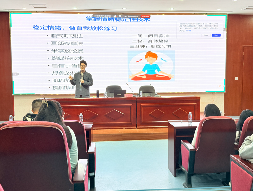 講座聚焦實(shí)習(xí)期間常見(jiàn)心理困擾,從“好心態(tài)的內(nèi)涵”切入,系統(tǒng)解析環(huán)境變化、任務(wù)壓力、人際關(guān)系等多重挑戰(zhàn)。丘文福結(jié)合醫(yī)學(xué)實(shí)習(xí)生真實(shí)案例與研究數(shù)據(jù),指出實(shí)習(xí)既是專(zhuān)業(yè)成長(zhǎng)必經(jīng)之路,也是心理韌性鍛煉關(guān)鍵期。他強(qiáng)調(diào),就業(yè)與經(jīng)濟(jì)壓力、人際關(guān)系擔(dān)憂、專(zhuān)業(yè)發(fā)展信心不足是實(shí)習(xí)生焦慮核心來(lái)源,其中就業(yè)壓力相關(guān)焦慮檢出率達(dá)93.4%,需重點(diǎn)關(guān)注,并通過(guò)互動(dòng)提問(wèn)引導(dǎo)學(xué)生認(rèn)知自身潛在心理挑戰(zhàn)。