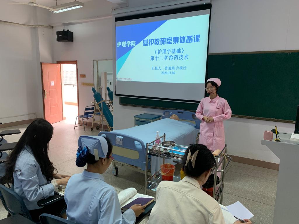 為了進(jìn)一步提高教師的備課效果和教學(xué)水平,充分運(yùn)用信息化現(xiàn)代技術(shù)提高基礎(chǔ)護(hù)理教學(xué)質(zhì)量,發(fā)揮黨員先鋒模范作用,2020年11月06日上午10點(diǎn),護(hù)理學(xué)院基礎(chǔ)護(hù)理教研室組織教研室全體教師暨護(hù)理學(xué)院第一黨支部黨員教師在護(hù)理學(xué)院206教室開展了《給藥技術(shù)》集體備課活動(dòng)。