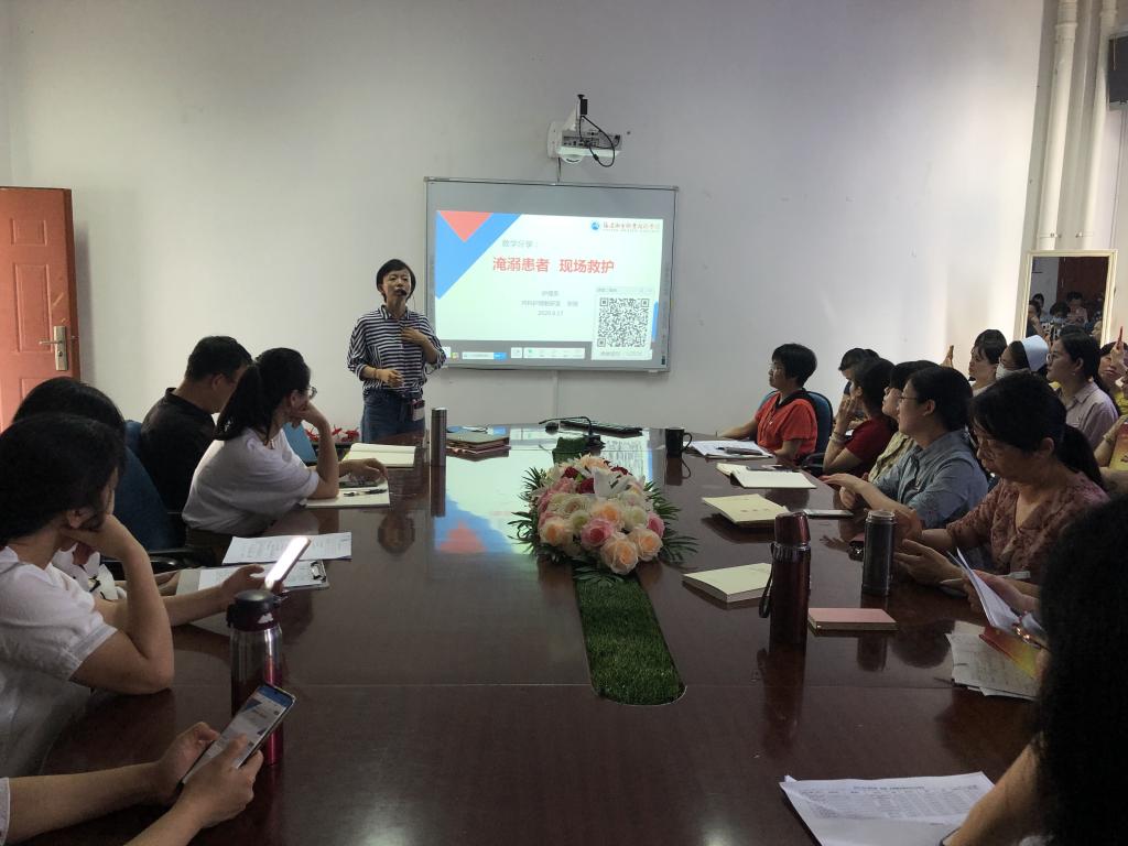 9月17日下午,內(nèi)科護(hù)理教研室張璟老師在護(hù)理系會(huì)議室進(jìn)行了一場(chǎng)題為《淹溺患者,現(xiàn)場(chǎng)救護(hù)》的信息化教學(xué)展示,搭載雨課堂平臺(tái),以手機(jī)為媒介,護(hù)理系的教師們化身學(xué)生,跟隨張璟老師的步伐,通過(guò)現(xiàn)場(chǎng)提問(wèn)生成重點(diǎn)詞條、發(fā)送彈幕進(jìn)行課堂討論、屏幕滾動(dòng)進(jìn)行隨機(jī)提問(wèn)等方式,在輕松愉快的氣氛體驗(yàn)了一場(chǎng)有趣的課堂教學(xué)活動(dòng),隨后老師們也針對(duì)如何將信息化教學(xué)更好地融入課堂展開(kāi)了熱烈的討論。