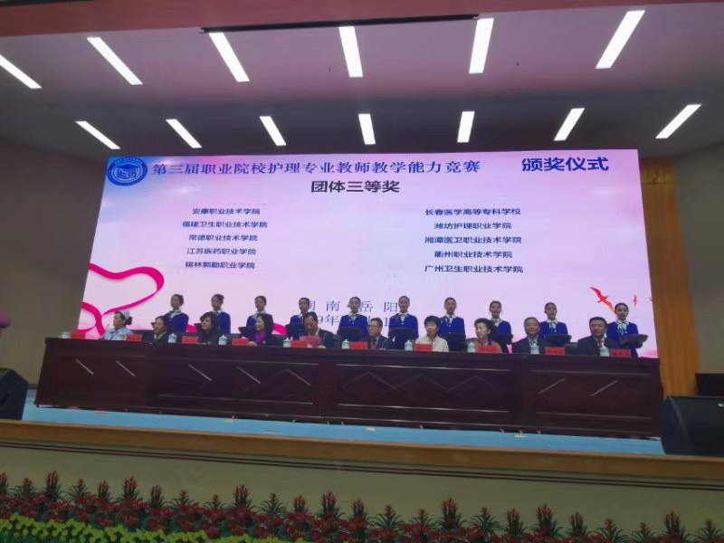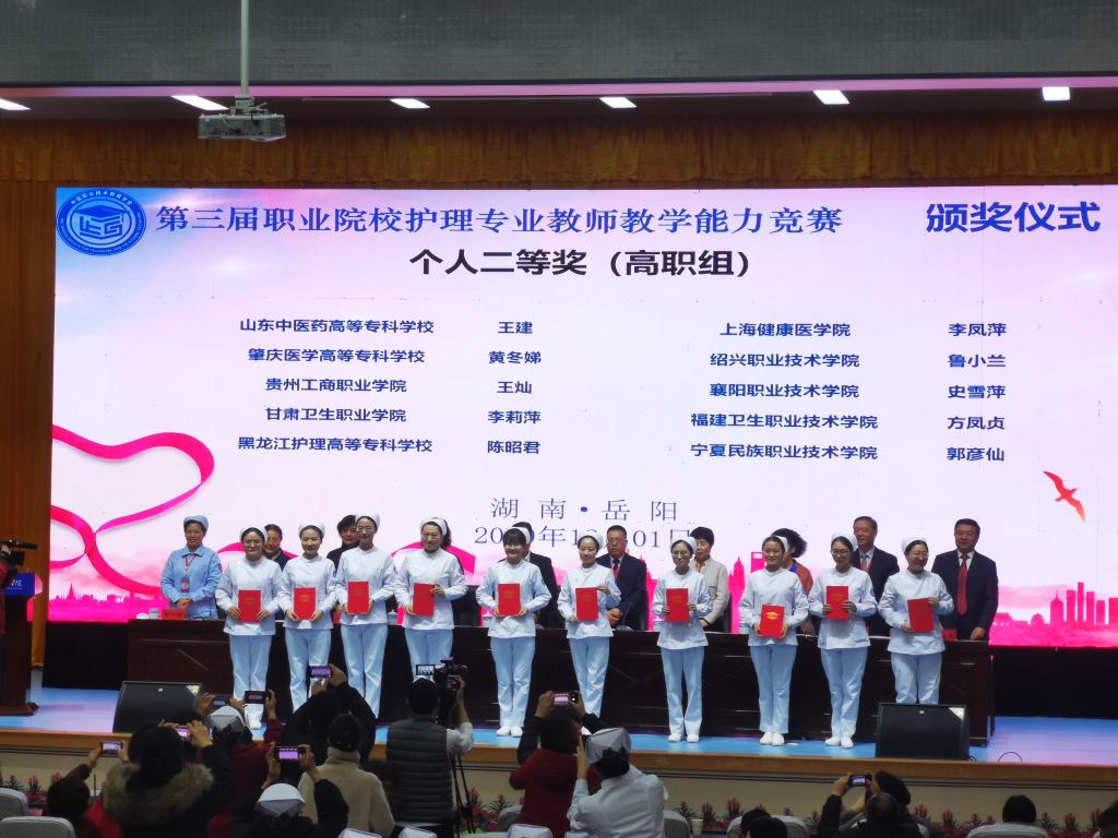 2019年11月27日至12月1日,全國(guó)職業(yè)院校護(hù)理專業(yè)教師教學(xué)能力大賽在岳陽職業(yè)技術(shù)學(xué)院舉行。護(hù)理系方鳳貞和楊燕清老師榮獲團(tuán)體三等獎(jiǎng),方鳳貞老師榮獲個(gè)人二等獎(jiǎng)。