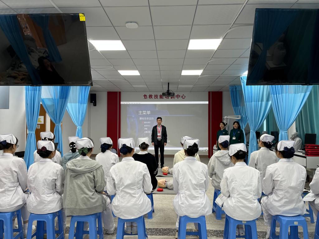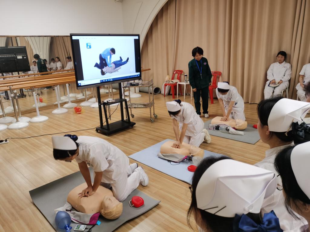 名師工作室引領,打造急救教育新標桿。教育部職業(yè)教育名師培養(yǎng)對象洪霞教授主持的名師工作室成為項目核心引擎。在AHA標準教材和標準化教學的基礎上,名師工作室整合教學名師、金牌工匠、AHA認證導師,將AHA的BLS(基礎生命支持)課程轉化為動態(tài)教學場景。救護演練100%還原急救現場場景,每一步都有詳細解說,實現按壓深度、通氣頻率等操作參數的實時糾錯。培訓過程中導師們孜孜不倦,傾囊相授;學員們專心致志,收獲頗豐。