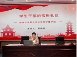 陳梅欽老師在提升學(xué)生干部素質(zhì)和能力上,提出“1+2+3+4+5”新時代學(xué)生干部模式,希望學(xué)生干部時刻保持為同學(xué)全心全意服務(wù)的初心,以身作則,樹立良好榜樣。另外,陳梅欽老師針對學(xué)生干部常用禮儀,強調(diào)學(xué)生干部應(yīng)加強言語表達、規(guī)范待人接物禮儀、會議禮儀等,希望在未來成長道路上,展現(xiàn)良好的形象和素養(yǎng),樹立正確的價值觀和行為準則。