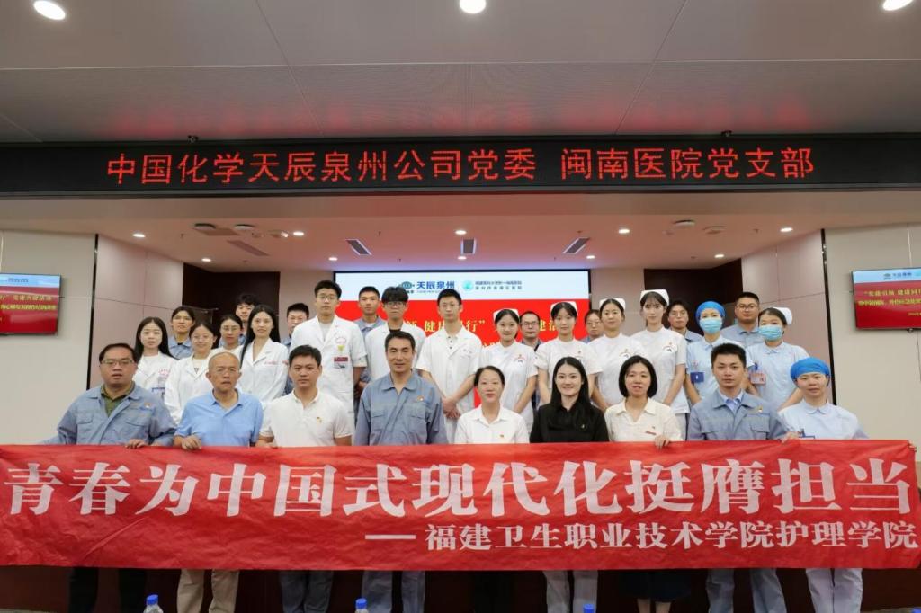 在2024年8月9日下午,福建衛(wèi)生職業(yè)技術(shù)學(xué)院護(hù)理學(xué)院第二黨支部副書記林婕老師帶領(lǐng)護(hù)理學(xué)院“夢飛天使”志愿服務(wù)隊的隊員們攜手福建醫(yī)科大學(xué)附一閩南醫(yī)院泉州市泉港區(qū)醫(yī)院一同前往中化學(xué)天辰(泉州)新材料有限公司為職工開展醫(yī)學(xué)知識宣教與CPR的演示與教學(xué)活動。