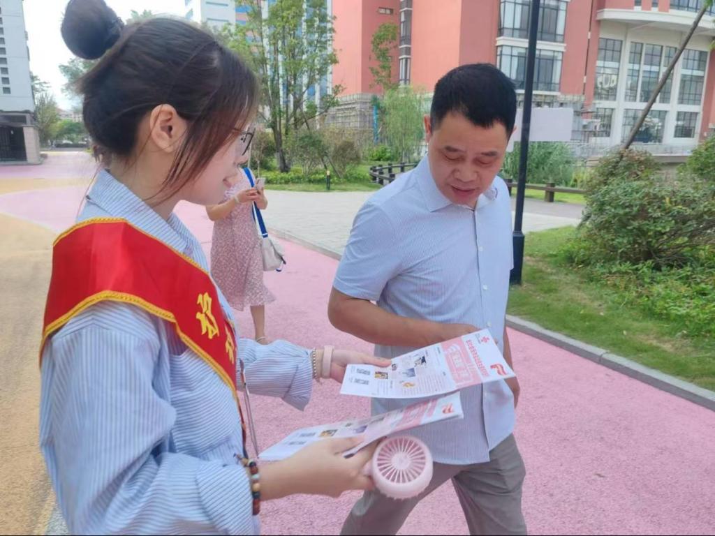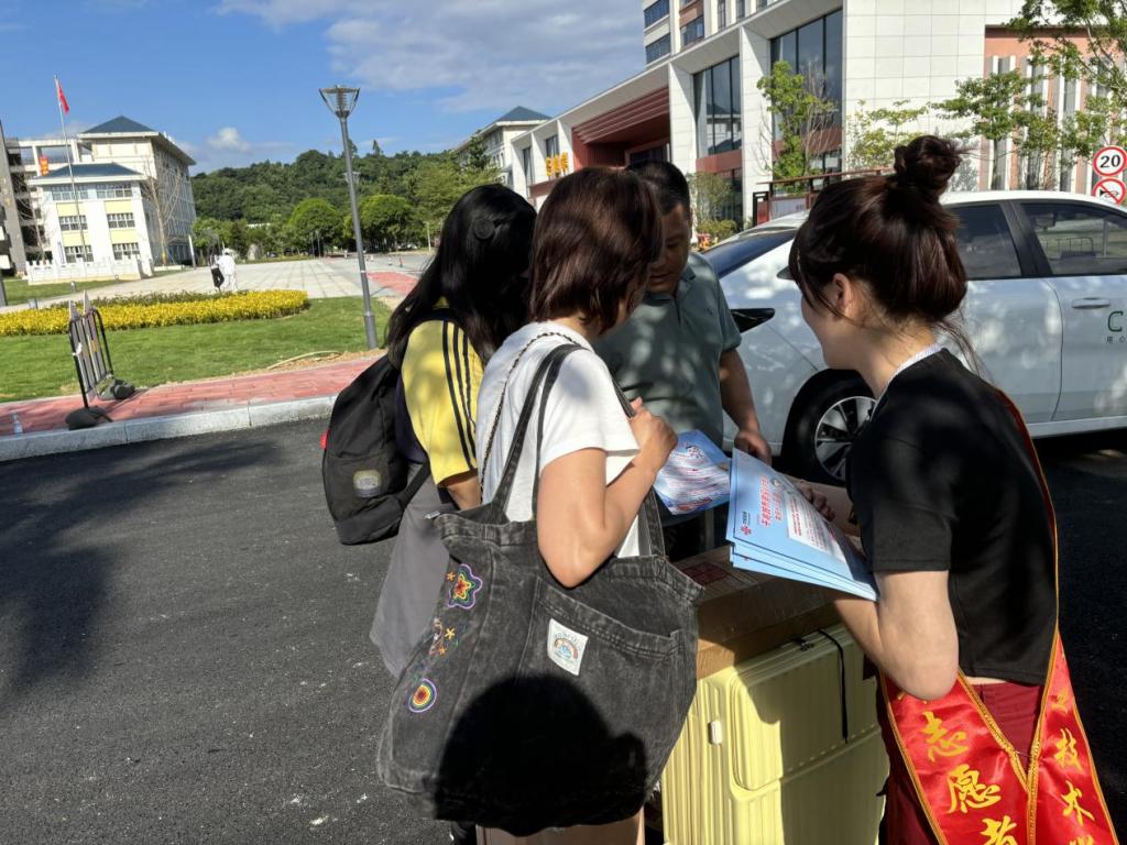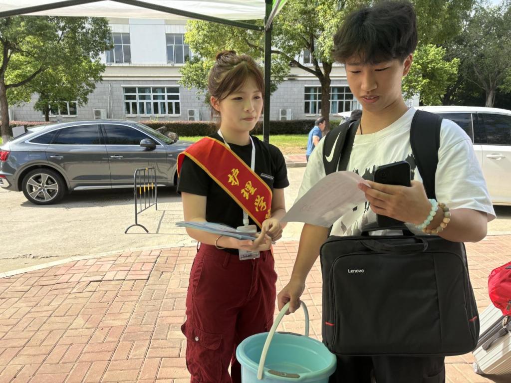 此次活動 “夢飛天使”志愿志愿服務隊的志愿者們分成幾個小組,活躍在校園的各個角落。清晨的陽光灑在校園的林蔭道上,志愿者們早已準備就緒,他們手中拿著學院精心定制的反詐宣傳單,以飽滿的熱情迎接新生和家長們的到來
