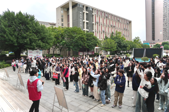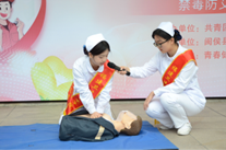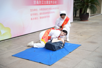 在展示急救技能這一環(huán)節(jié),護(hù)理學(xué)院青年志愿者向大家展示了CPR,現(xiàn)場(chǎng)氣氛熱鬧。演示急救技能時(shí),她們身姿挺拔、目光篤定,瞬間成為全場(chǎng)焦點(diǎn)。一邊向大家介紹步驟,一邊雙手交疊、找準(zhǔn)按壓點(diǎn),跟隨節(jié)奏有力按壓,模擬著與死神爭(zhēng)分奪秒的緊張;俯身、通氣,標(biāo)準(zhǔn)的人工呼吸操作,都詮釋著志愿者們的專業(yè)與專注