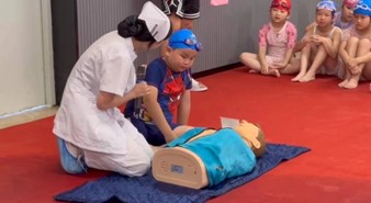 泳池邊,孩子們圍聚成圈,目光緊緊跟隨元欣怡的雙手,生怕錯(cuò)過任何關(guān)鍵動(dòng)作。隨后進(jìn)入實(shí)操練習(xí),大家躍躍欲試,在元欣怡的悉心指導(dǎo)下,輪流上陣模擬急救場景。有的同學(xué)起初略顯緊張,按壓節(jié)奏不穩(wěn),但在反復(fù)練習(xí)與耐心糾正下,逐漸掌握了技巧,雙手沉穩(wěn)有力地按壓著模擬人胸膛,吹氣時(shí)神情專注?,F(xiàn)場氣氛熱烈而有序,問題與解答聲此起彼伏,學(xué)習(xí)的熱情如同泳池里的水花不斷翻涌。