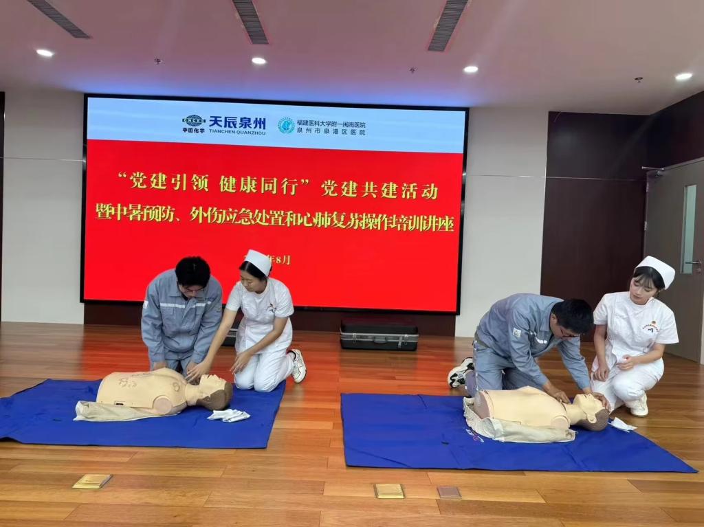 在中化學(xué)天辰(泉州)新材料有限公司的職工也參與了我們的活動(dòng),我們?yōu)槠溟_展了醫(yī)學(xué)知識(shí)宣教與CPR的演示與教學(xué)活動(dòng)。通過(guò)這些活動(dòng),職工們不僅學(xué)到了寶貴的急救知識(shí),也增強(qiáng)了應(yīng)對(duì)緊急情況的能力。