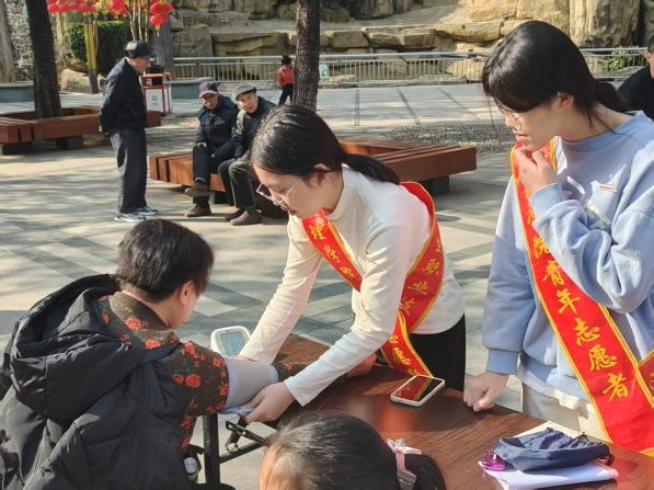 在測(cè)量血壓區(qū)域,他們動(dòng)作嫻熟,一邊輕聲安撫著略顯緊張的鄉(xiāng)親,一邊精準(zhǔn)操作儀器。仔細(xì)記錄數(shù)據(jù)后,還耐心地為鄉(xiāng)親講解血壓知識(shí),給出合理建議,用專業(yè)與熱忱詮釋著醫(yī)者仁心,傳遞著青春正能量。