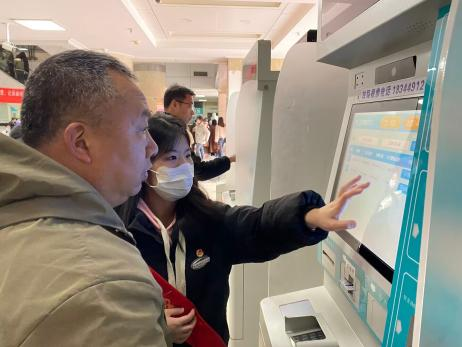 活動(dòng)現(xiàn)場,志愿者們化身為“雷鋒”,穿梭在人群中,為前來就醫(yī)的患者提供幫助。許多患者對(duì)醫(yī)保電子憑證機(jī)的使用感到陌生,因此志愿者們耐心細(xì)致,從打開醫(yī)保電子憑證的第一步開始,一步步演示如何在機(jī)器上掃碼完成掛號(hào)、繳費(fèi)等操作。他們用通俗易懂的語言,不厭其煩地講解,直到患者完全掌握。