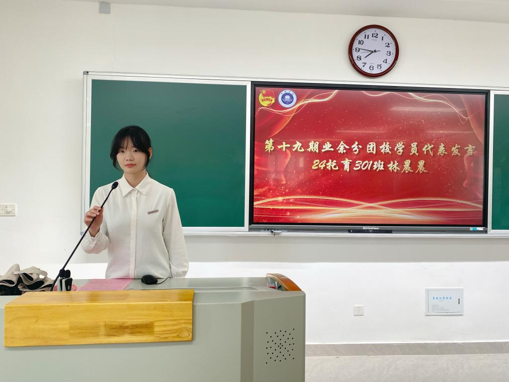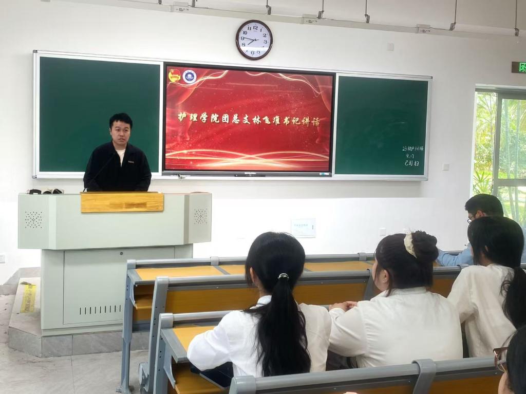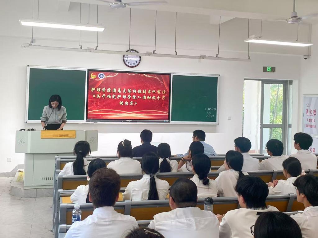 在熱烈的掌聲中,護理學院團總支副書記陳梅欽上臺宣讀《關于確定護理學院入團積極分子的決定》,鼓勵新學員以更高標準嚴格要求自己,用實際行動踐行青春誓言。