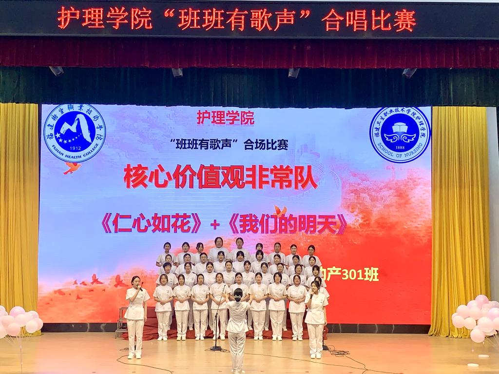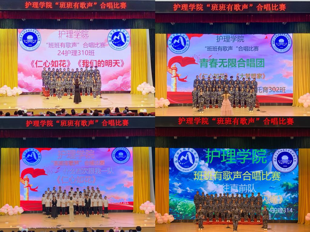 以嘹亮歌聲唱出青春真情懷,以滿腔激情奏響愛國最強音,護理學(xué)院以班級為單位,共計24個班參加此次合唱比賽,各班級按抽簽順序依次上場。分別表演校歌《仁心如花》以及一首朝氣紅星歌曲,讓我們一起回顧一下大家出色的演出吧!