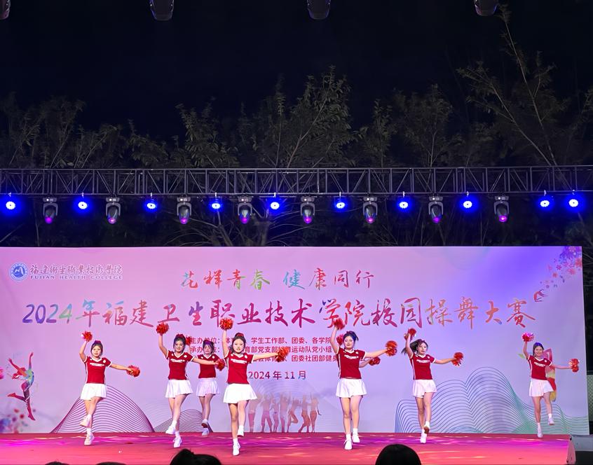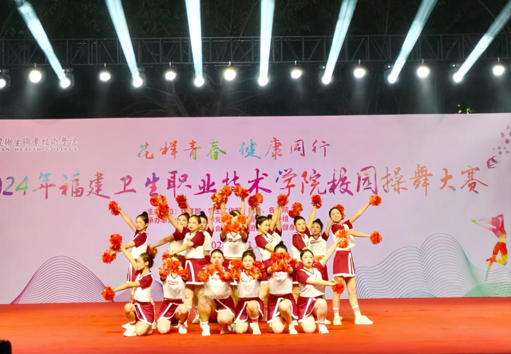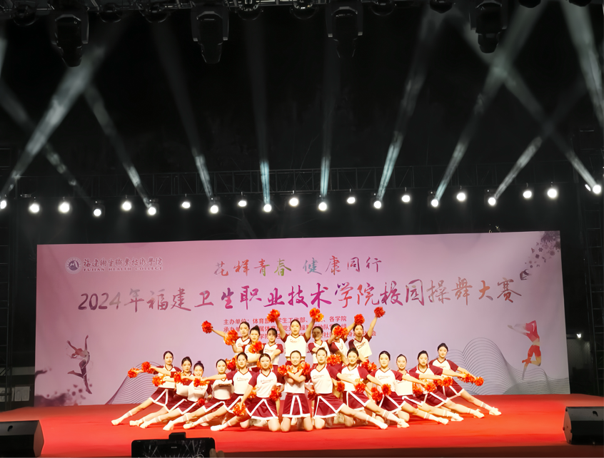 賽場(chǎng)上,啦啦操隊(duì)員們揮動(dòng)著花球,激情四射。