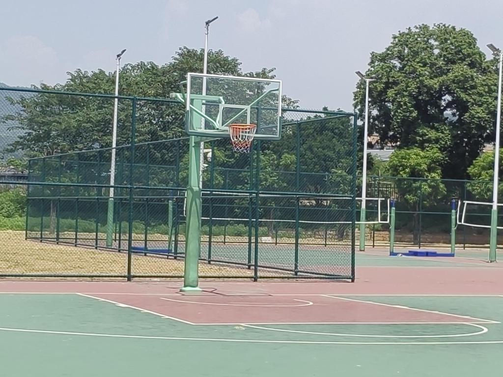 校園籃球場共兩個籃球場,室內(nèi)室外各一個3。為愛籃球的閩衛(wèi)院er們,遮風(fēng)避雨球場旁邊設(shè)有板凳,觀眾席里歡呼不斷運球、傳球、上籃動作一氣呵成,盡顯青春風(fēng)彩。