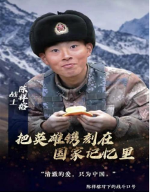 陳祥榕(2001.12-2020.6),中國(guó)人民解放軍某機(jī)步營(yíng)站士。2020年6月在邊境沖突中,突入重圍,營(yíng)救戰(zhàn)友,英勇戰(zhàn)斗,奮力反擊,毫不畏懼,直至壯烈犧牲。英雄雖已離去,精神永駐邊關(guān)。“清澈的愛,只為中國(guó)”這是18歲陳祥榕寫下的戰(zhàn)斗口號(hào)。