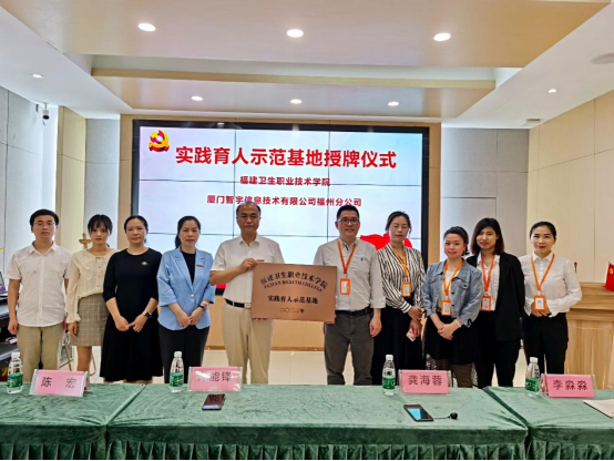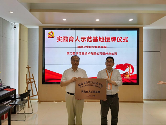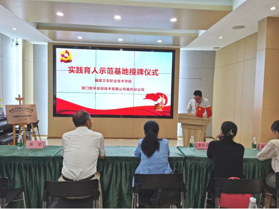 福建衛(wèi)生職業(yè)技術(shù)學(xué)院與廈門智宇信息科技有限公司共建實(shí)踐育人示范基地授牌儀式現(xiàn)場