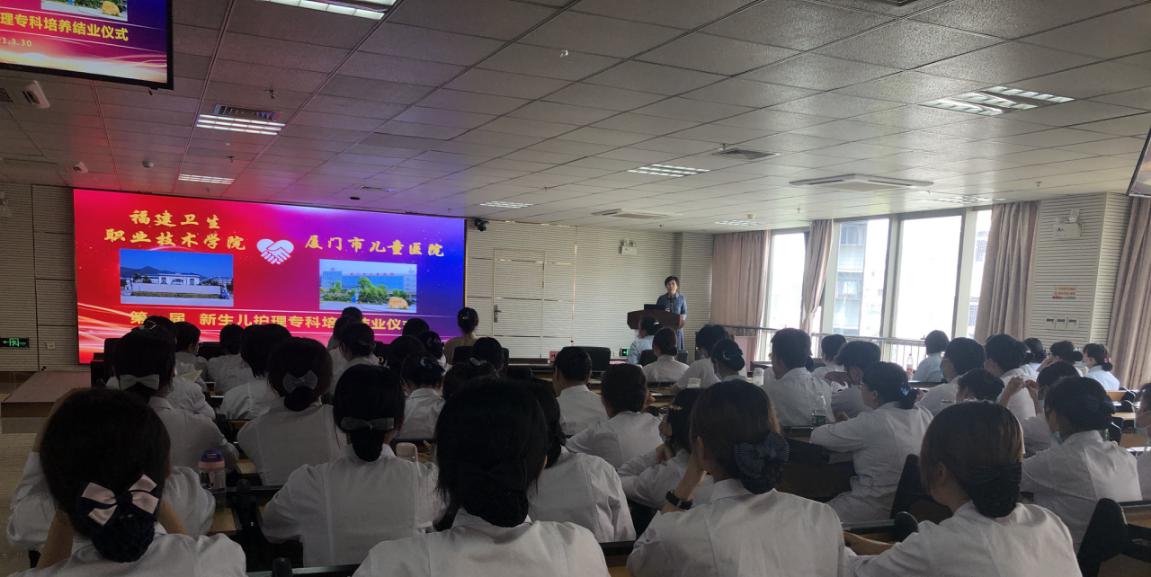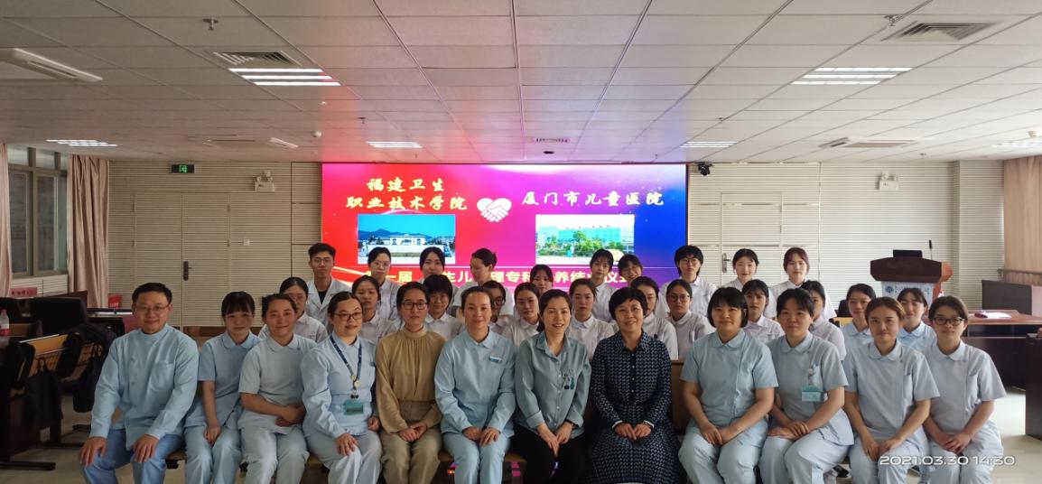 2021年3月30日,我校與廈門市兒童醫(yī)院校企合作班首屆新生兒護(hù)理??婆囵B(yǎng)課程結(jié)業(yè)證書頒發(fā)儀式在廈門市兒童醫(yī)院舉行。廈門市兒童醫(yī)院科教科張敏主任、護(hù)理部葉茹明副主任,我校護(hù)理學(xué)院龔海蓉院長(zhǎng)、輔導(dǎo)員盧楨妤老師,以及合作班師生參加頒發(fā)儀式。頒發(fā)儀式由葉茹明主持。