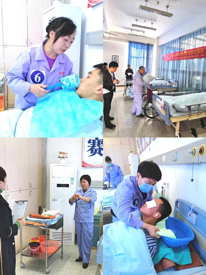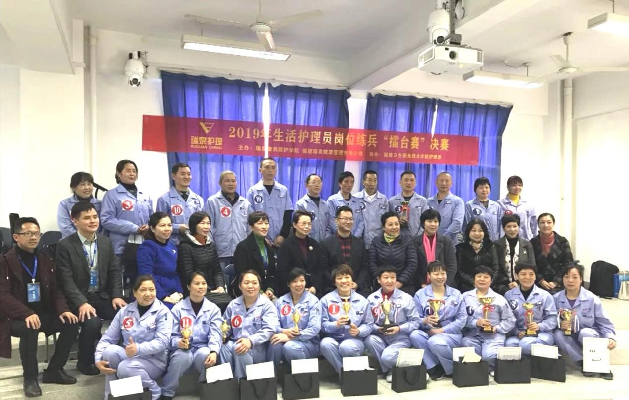 2019年12月8日,第五屆“瑞泉杯”生活護(hù)理崗位擂臺賽全省總決賽在我校成功舉辦。參加總決賽的23名選手是由全省各參賽醫(yī)院推薦,經(jīng)過層層選拔出來的優(yōu)秀護(hù)理員。比賽分組長組和普通護(hù)理員組,比賽內(nèi)容分為理論和技能兩大部分,組長組比賽增加一項現(xiàn)場應(yīng)答環(huán)節(jié),理論部分采取筆試考核方式,技能部分包括了輪椅運送技術(shù)、床上擦浴、晨間護(hù)理等5項生活護(hù)理技術(shù)。