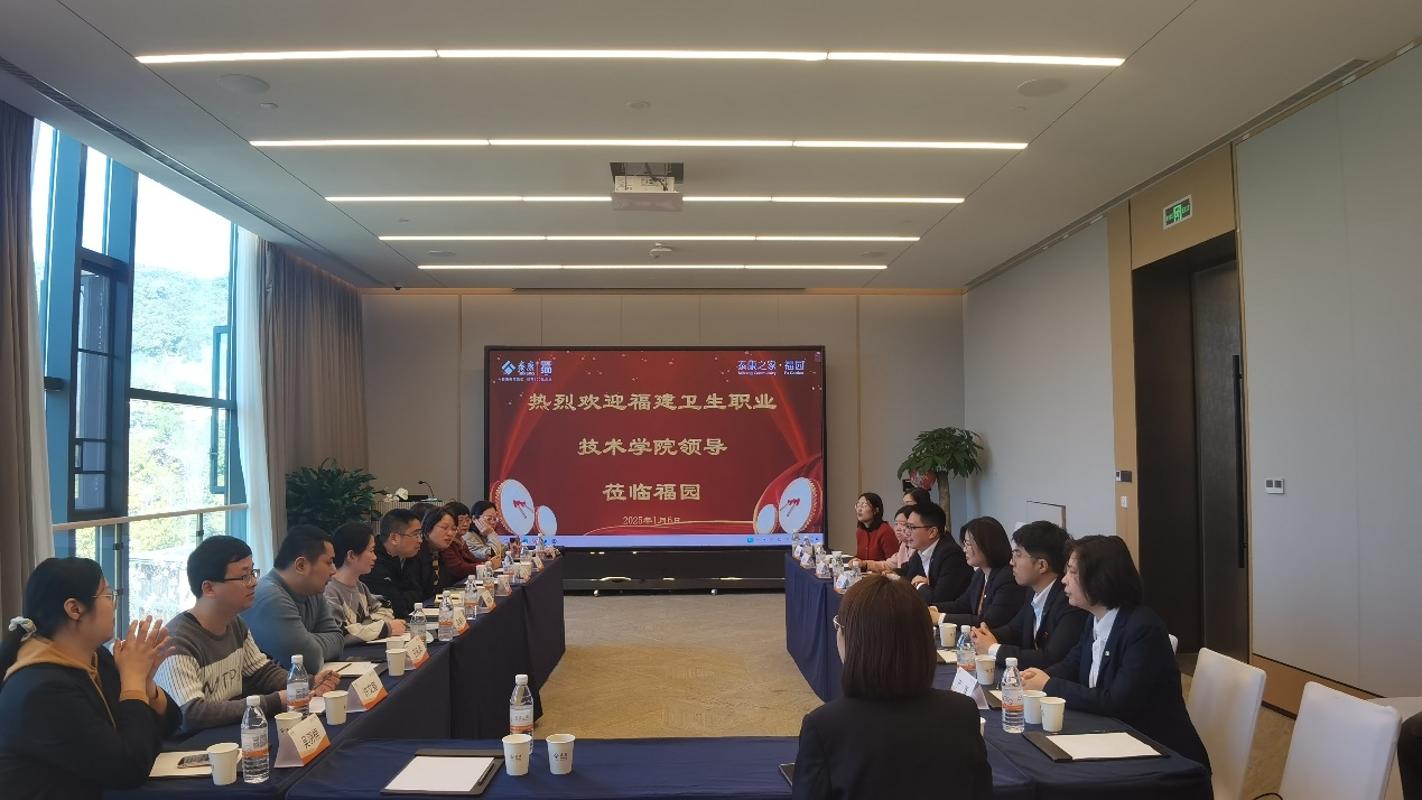 泰康之家?福園社區(qū)總經(jīng)理余盈、健康照護(hù)部經(jīng)理黃璜、人力資源總監(jiān)鄭棟及相關(guān)部門管理人員熱情接待我校一行,帶領(lǐng)我校一行實(shí)地參觀了養(yǎng)老社區(qū)及配套康復(fù)醫(yī)院,并召開(kāi)合作交流會(huì)。