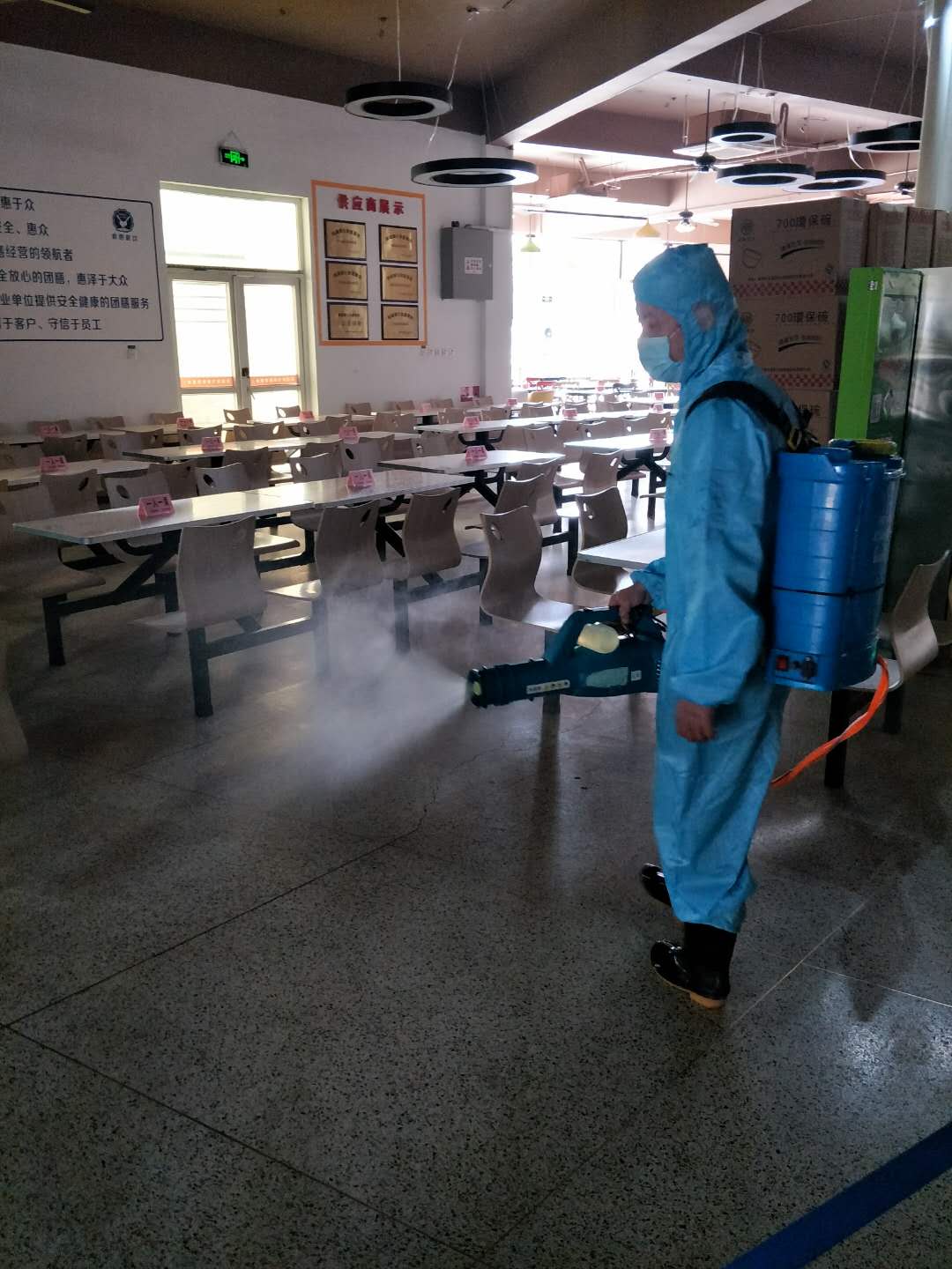 為筑牢食品安全“防線”,為開學(xué)以后安全供餐提供保障,后勤管理處未雨綢繆,周密部署防疫期間食堂供餐防護準(zhǔn)備工作,認真做好食堂供餐防護物資儲備和環(huán)境消殺,精心布置用餐區(qū),設(shè)置指示標(biāo)識、引導(dǎo)線、桌面提示語等,詳細制定防疫期間食堂供餐方案并組織員工開展演練。演練內(nèi)容包括洗手、排隊、取餐、入座、用餐、會收餐盤、離場等流程。