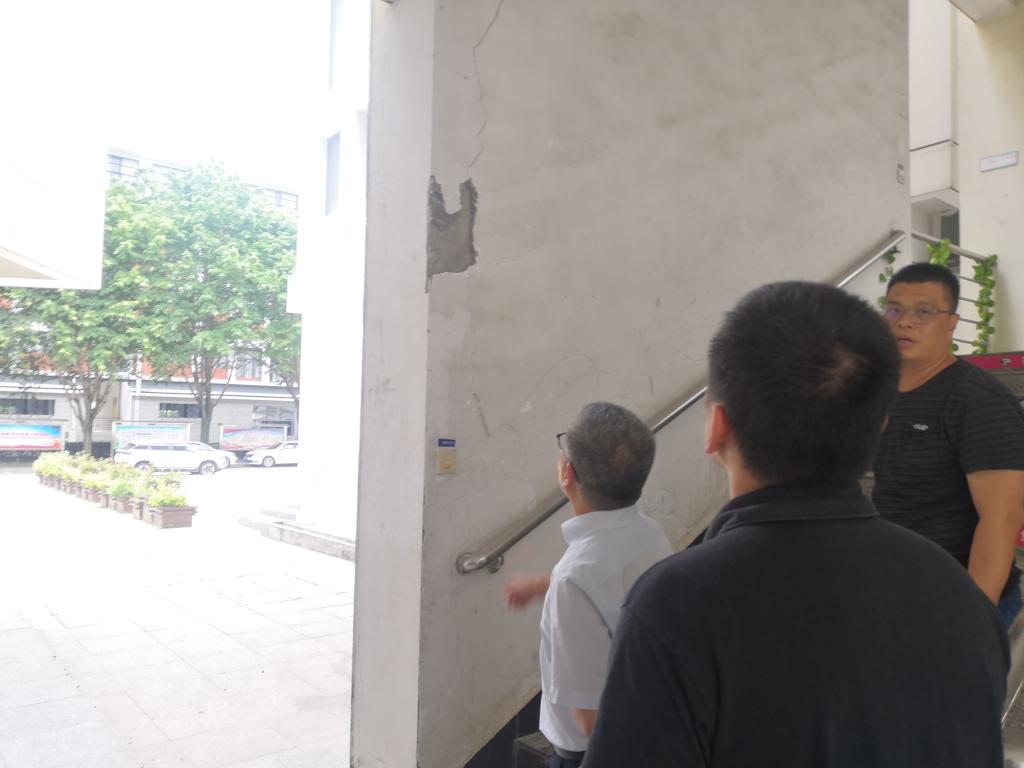 5月29日,陳貞健副院長(zhǎng)帶領(lǐng)后勤管理處人員對(duì)各部門報(bào)告的疑似房屋結(jié)構(gòu)安全隱患進(jìn)行現(xiàn)場(chǎng)復(fù)查。