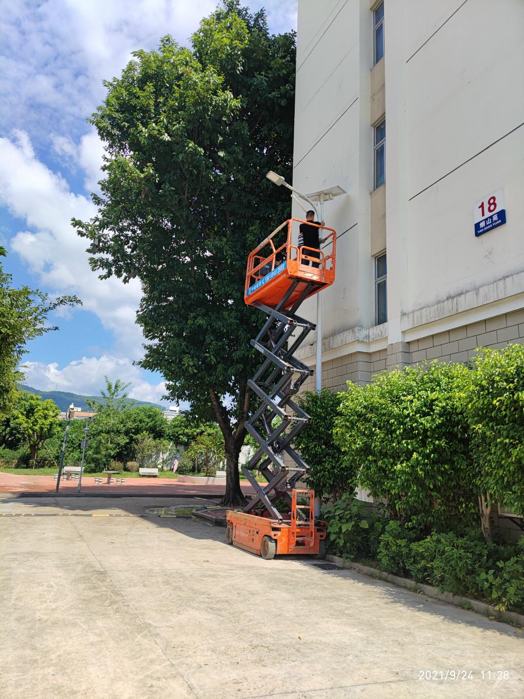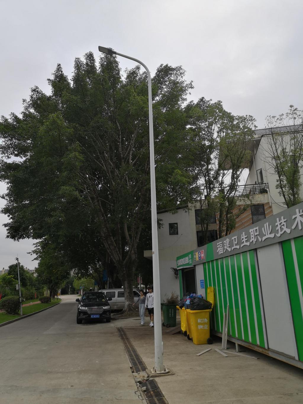 為進一步推進綠色學校建設(shè)工作,有效地促進學校節(jié)能降耗,2021年10月,我校更新環(huán)校路45盞老舊高桿路燈為節(jié)能LED燈。同時,在采光良好的路段安裝太陽能路燈7盞。