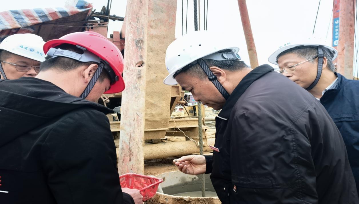 校長(zhǎng)許能鋒一行詳細(xì)了解項(xiàng)目樁基工程進(jìn)展情況
