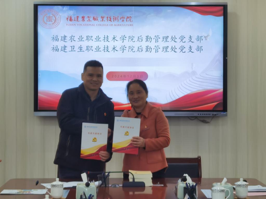 共建儀式上,支部書(shū)記王鈍銳與福建農(nóng)業(yè)職業(yè)技術(shù)學(xué)院后勤管理處黨支部書(shū)記黃曉梅分別介紹了各自支部的基本情況,雙方圍繞黨組織建設(shè)、黨員發(fā)展、資源共享等進(jìn)行了交流分享,雙方表示將建立常態(tài)化的聯(lián)系溝通機(jī)制,發(fā)揮各自黨組織優(yōu)勢(shì),加強(qiáng)支部建設(shè),探索共建機(jī)制,互相汲取先進(jìn)經(jīng)驗(yàn)和創(chuàng)新做法,堅(jiān)持相互交流學(xué)習(xí),共同提高支部黨建工作水平,提升后勤保障服務(wù)水平。交流結(jié)束后,雙方黨支部書(shū)記共同簽署了黨支部共建協(xié)議書(shū)。