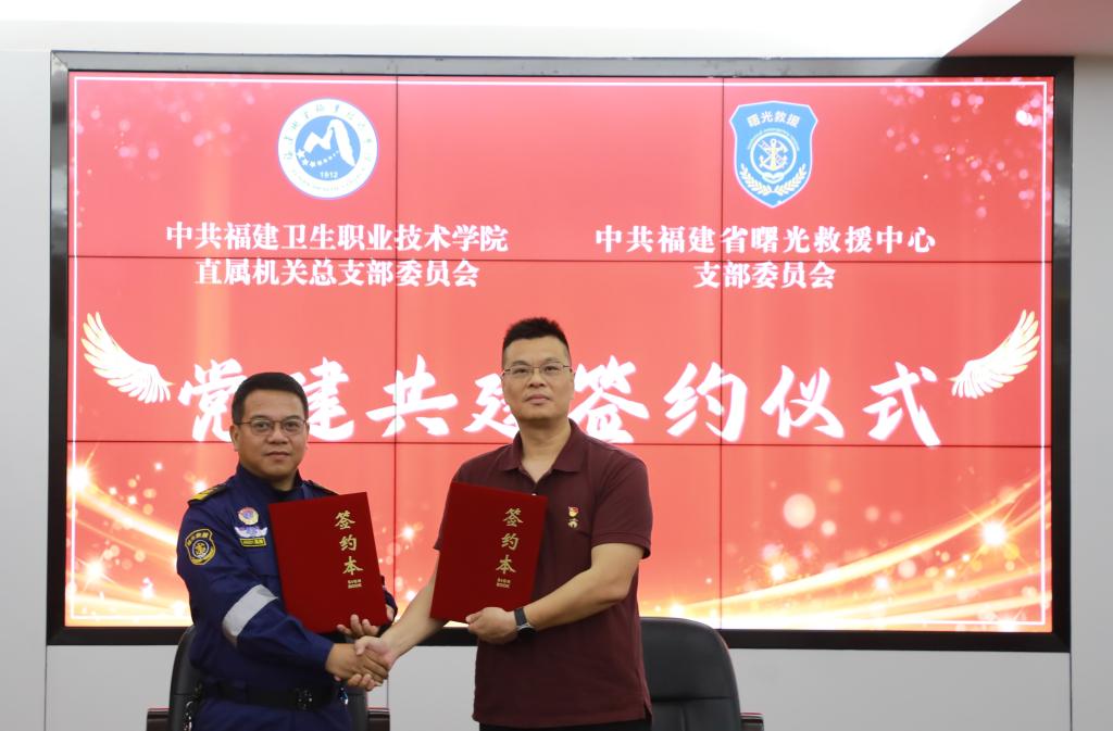 現(xiàn)場,艾松軍代表我校對福建省曙光救援中心一行的到來表示熱烈歡迎。他表示,福建省曙光救援中心是一支極其專業(yè)的救援隊伍,長期奮戰(zhàn)在保障人民群眾生命財產安全的第一線,令人欽佩。我校作為一所歷史悠久的醫(yī)學院校,堅守著為生命護航的育人使命,雙方理念不謀而合。本次開展共建有利于雙方共同探索黨建工作的新思路、新方法,共同提升黨員干部的思想政治素質和組織力、凝聚力、戰(zhàn)斗力,為服務社會、造福人民作出更大貢獻。