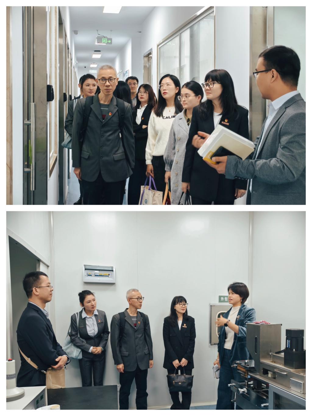 隨后,在閩江學院材料與化學工程學院黨委書記陳世文陪同下,一行人走進閩江學院材料與化學工程學院實地觀摩。在藥物制劑研究與測試中心,院長助理張燕杰副教授為大家詳細介紹中心在人才培養(yǎng)和社會服務等方面的具體做法與成效。在制藥工程藥物制劑GMP車間實訓基地,教工第三黨支部書記張梅副教授引領我校一行近距離觀摩藥物從原料藥到劑型選擇、壓片、膠囊罐裝、藥物外包裝等產業(yè)化場景實操訓練過程,詳細了解從藥物研發(fā)到規(guī)?;a的完整鏈條,切身感受到科技創(chuàng)新在醫(yī)藥領域的巨大動能。此次實地觀摩為思考如何推進產教融合、優(yōu)化應用型醫(yī)藥人才培養(yǎng)模式提供了寶貴的現(xiàn)實參考。