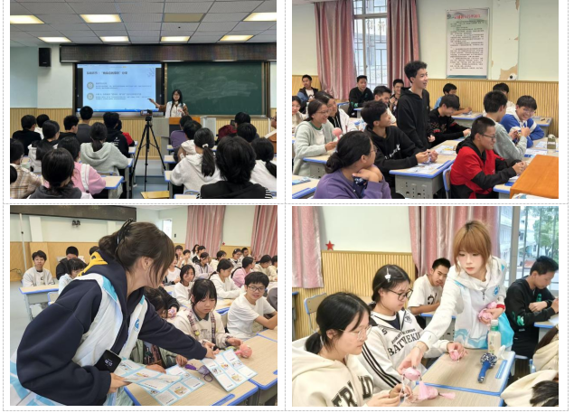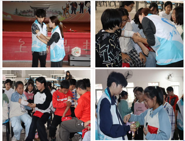 藥學(xué)院紅十字會的志愿者指導(dǎo)初中同學(xué)們急救包扎手法,將理論知識轉(zhuǎn)化為實際操作能力,在沉浸式體驗中學(xué)習(xí)生命健康教育。