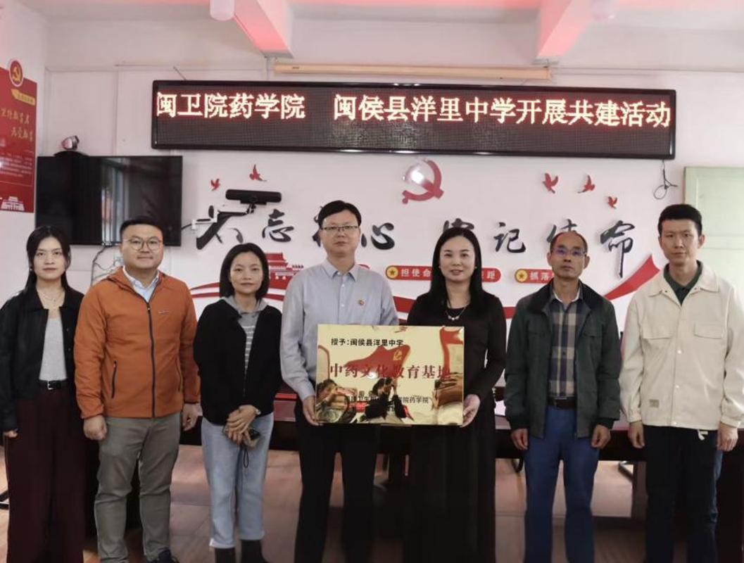 藥學(xué)院第三、第四黨支部和團委師生28人走進美麗鄉(xiāng)村,在閩侯縣洋里中學(xué)開啟“中藥文化+衛(wèi)生健康”教育共建活動,在微涼秋雨中為校校合作協(xié)同育人拉開溫暖序幕。藥學(xué)院黨委書記葉海與洋里中學(xué)校長陳敏簽訂共建中藥文化教育基地協(xié)議,聘請藥學(xué)院林玲副教授擔(dān)任洋里中學(xué)科技副校長。