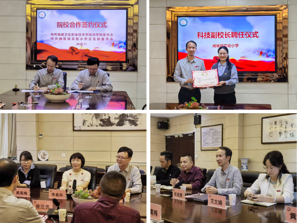 11月6日,學(xué)校黨委副書記李美華與藥學(xué)院第一、第三黨支部師生一同來到閩侯縣實驗小學(xué)校園,開展黨建結(jié)對共建和“科普知識進校園”主題活動,以專業(yè)力量搭建探索文化與科學(xué)的橋梁。葉海與閩侯縣實驗小學(xué)校黨總支書記張進勇共同簽署共建協(xié)議,第一黨支部書記羅蘭副教授受聘為閩侯縣實驗小學(xué)科技副校長,為協(xié)同育人注入新動能,承擔(dān)起一份科普教育的責(zé)任。