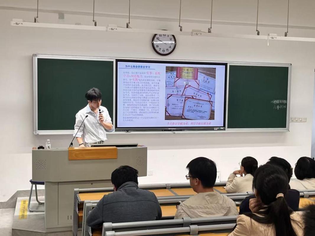 在隨后的分享會(huì)上,黃德興與2025級醫(yī)學(xué)檢驗(yàn)技術(shù)專業(yè)學(xué)生進(jìn)行了“與學(xué)長話職業(yè)成長”分享交流。他不僅分享了多位同窗校友在各自崗位上的卓越業(yè)績,更結(jié)合自身從青澀學(xué)子迅速成長為崗位能手的經(jīng)歷,圍繞核心能力儲(chǔ)備、清晰職業(yè)規(guī)劃與持續(xù)自我提升等問題,傾囊相授其從校園走向職場的心得感悟。在互動(dòng)環(huán)節(jié),同學(xué)們圍繞崗位認(rèn)知、職業(yè)規(guī)劃等困惑與黃德興學(xué)長進(jìn)行深入交流,現(xiàn)場氣氛熱烈,思想的火花不斷碰撞。