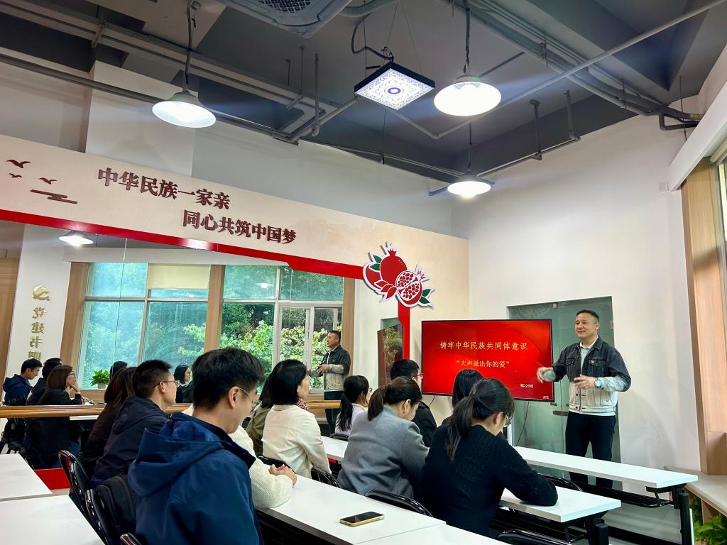參觀過(guò)程中,艾力·熱合滿以“大聲說(shuō)出你的愛(ài)”為題,為支部黨員帶來(lái)了一場(chǎng)飽含深情的主題分享。他結(jié)合自身從新疆到福州的創(chuàng)業(yè)扎根歷程,講述了在閩疆兩地文化交融中收獲的“家人般的溫暖”——從初到福州時(shí)的陌生忐忑,到如今與本地同胞攜手發(fā)展、共筑事業(yè),從“他們”到“家人”的身份轉(zhuǎn)變,正是“中華民族一家親”的生動(dòng)寫(xiě)照。真摯的話語(yǔ)、深刻的內(nèi)涵,引發(fā)支部黨員強(qiáng)烈共鳴,大家積極參與互動(dòng),紛紛表示將以此次主題黨日活動(dòng)為契機(jī),把愛(ài)黨愛(ài)國(guó)情懷融入教學(xué)科研與社會(huì)服務(wù)等工作中,在培養(yǎng)醫(yī)藥人才過(guò)程中傳遞民族團(tuán)結(jié)理念,讓“中華民族一家親”的種子在校園生根發(fā)芽。