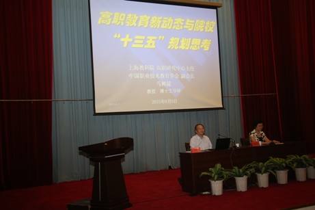 研討會特別邀請了中國職業(yè)技術教育學會副會長、高職教育發(fā)展研究中心主任馬樹超教授來校作“高職教育新動態(tài)和院?!濉?guī)劃思考”專題講座。馬樹超教授的講座從新常態(tài)思路下高職教育新動態(tài)、現(xiàn)代職業(yè)教育新定位、高職發(fā)展環(huán)境特征與改革發(fā)展策略思考等三個部分展開,在把握“十三五”發(fā)展環(huán)境與階段特征的基礎上確立“十三五”發(fā)展目標和總體思路,強調面對“互聯(lián)網+”的新常態(tài),高職院校要加快智慧校園和數(shù)字教學資源建設,完善信息化教學基礎設施、深化在線信息技術環(huán)境下工學結合教與學模式改革。