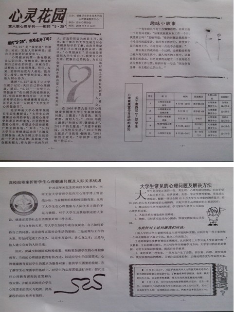《心靈花園:第六期心理專刊——相約“5·25”》(2013年5月20日)