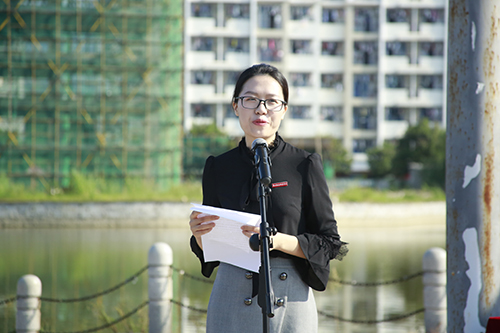 管理系楊笑老師作為教師代表首先發(fā)言,她殷切希望同學(xué)們要做好吃“苦”的準(zhǔn)備,做一個“主動”的人,做一個有創(chuàng)新精神的人,做一個自信的人,在福衛(wèi)的大家庭中,盡情放飛自我,追逐夢想。作為老生代表,學(xué)生會主席江思思在發(fā)言中分享了暑期赴臺灣參加“海峽兩岸紅十字青少年人道之旅”的經(jīng)歷,并對學(xué)弟學(xué)妹們表達(dá)深深祝福。新生代表護(hù)理系連堯旺同學(xué)發(fā)言,表達(dá)對大學(xué)學(xué)習(xí)生活的期待和向往。其后,學(xué)生工作處董東老師帶領(lǐng)2568名新生高舉右手,莊嚴(yán)宣誓,將醫(yī)學(xué)生誓詞銘記于心。