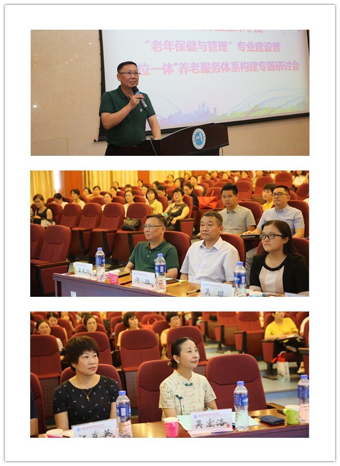 6月20日,“老年保健與管理”專業(yè)建設(shè)暨 “三位一體”養(yǎng)老服務(wù)體系構(gòu)建專題研討會(huì)在實(shí)訓(xùn)樓報(bào)告廳順利召開。本次研討會(huì)由護(hù)理系主辦,邀請(qǐng)養(yǎng)老行業(yè)政府主管部門、知名專家學(xué)者及專業(yè)養(yǎng)老服務(wù)機(jī)構(gòu)負(fù)責(zé)人共聚一堂,共同探討?zhàn)B老服務(wù)體系構(gòu)建、老年保健與管理專業(yè)建設(shè)等相關(guān)事宜。學(xué)院黨委曾武祈書記、鄭翠紅副院長(zhǎng)及護(hù)理系領(lǐng)導(dǎo)出席了本次會(huì)議。