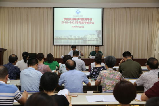 根據(jù)省教育廳黨組的統(tǒng)一部署和要求,7月3日上午,我院在行政樓六樓第三會(huì)議室召開(kāi)院領(lǐng)導(dǎo)班子和領(lǐng)導(dǎo)干部2018-2019學(xué)年度考核會(huì)議。省教育廳黨組成員、副廳長(zhǎng)、省委教育工委委員李迅,省教育廳學(xué)校安全工作處處長(zhǎng)李建華,省教育廳人事處副調(diào)研員蘇震英,省教育科學(xué)研究所辦公室副主任陳建超對(duì)我院領(lǐng)導(dǎo)班子和領(lǐng)導(dǎo)干部進(jìn)行考核。學(xué)院領(lǐng)導(dǎo)班子成員、中層干部、具有一定管理經(jīng)驗(yàn)的高級(jí)職稱(chēng)專(zhuān)技人員等共67位同志參加會(huì)議,會(huì)議由學(xué)院黨委書(shū)記曾武祈主持。