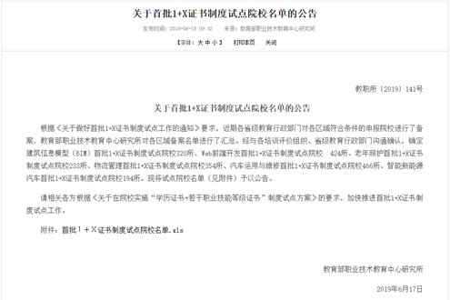 《關(guān)于在院校實施“學(xué)歷證書+若干職業(yè)技能等級證書”制度試點方案》是教育部為貫徹《國家職業(yè)教育改革實施方案》,推進新時代職業(yè)教育改革發(fā)展,把學(xué)歷證書與職業(yè)技能等級證書結(jié)合起來的方案,1+X證書制度體現(xiàn)了職業(yè)教育作為一種類型教育的重要特征,是落實立德樹人根本任務(wù)、完善職業(yè)教育和培訓(xùn)體系、深化產(chǎn)教融合校企合作的一項重要制度設(shè)計。通過執(zhí)行1+X制度,能顯著提高我院人才培養(yǎng)質(zhì)量,深化人才培養(yǎng)模式和評價模式改革,探索暢通技術(shù)技能人才成長通道。