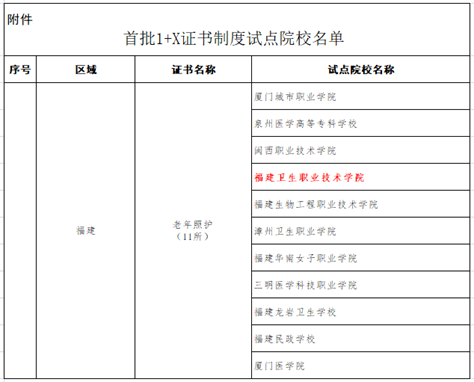 日前,教育部職業(yè)技術(shù)教育中心研究所正式公布《首批1+X證書制度試點院校名單》,我院護理系申請的老年照護證書名列其中。