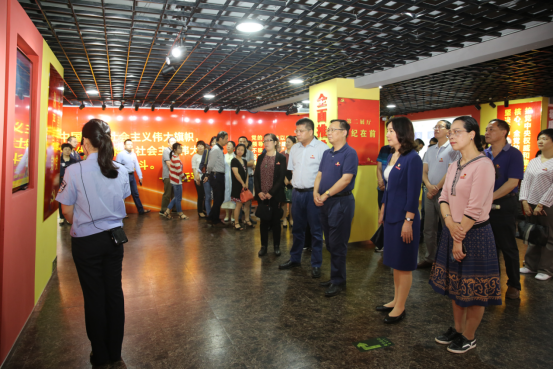 參觀活動伊始,全體黨員在黨委工作部部長吳華同志的帶領(lǐng)下集體宣誓,重溫入黨誓詞。繼而在講解員的引導(dǎo)下先后參觀了“不忘初心”“挺紀(jì)在前”“法網(wǎng)恢恢”“典型案例”“貪腐之鑒”等五個反腐倡廉警示教育展廳,認(rèn)真聽取講解,了解近期國內(nèi)發(fā)生的貪污腐敗大案要案和我省發(fā)生的典型腐敗案件,觀看落馬官員懺悔語錄,全體人員接受了深刻的思想洗禮。