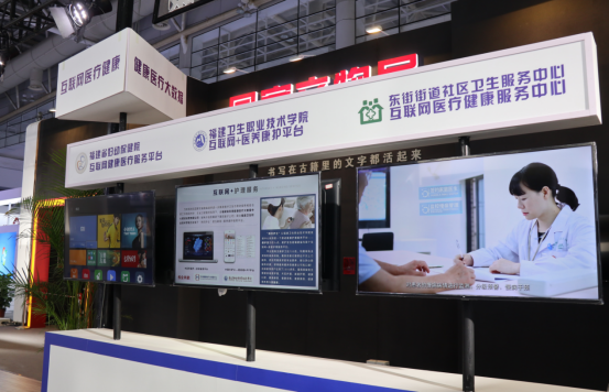↑7號(hào)館國(guó)家衛(wèi)健委展區(qū),福建衛(wèi)生職業(yè)技術(shù)學(xué)院的互聯(lián)網(wǎng)+醫(yī)養(yǎng)康護(hù)平臺(tái)位列其中