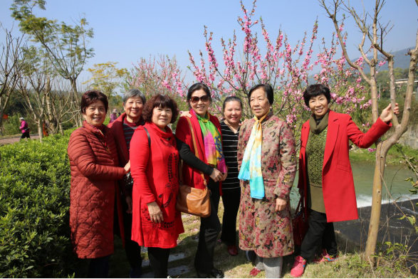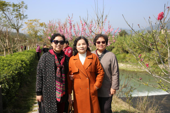 孔元村因花而出名,幾十畝黃燦燦的的油菜花田,粉俏的桃花和櫻花相互交疊,到處洋溢著春天的氣息。離退休的女老師們悠然漫步在明媚的春日陽光里,呼吸著清新的空氣,欣賞著美麗的景色,一邊談笑風生,彼此問候,一邊駐足觀賞,拍攝留影。滿面的喜悅展現(xiàn)了她們對活動的熱情與興致、親近大自然的愉悅和同事朋友相見的快,春光里留下了老同志們健康的身影和歡樂的笑聲。