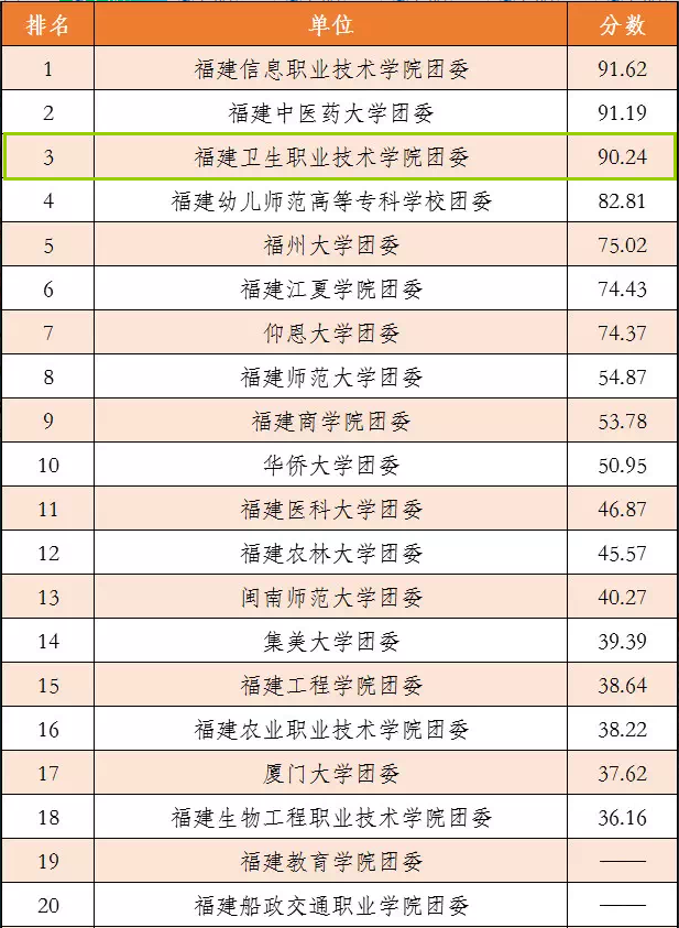 近日,共青團(tuán)福建省委公布第三季第二期“青年大學(xué)習(xí)”網(wǎng)上主題團(tuán)課成績(jī)單,我院團(tuán)委以90.25分,位列在省直屬高校團(tuán)委第三名。