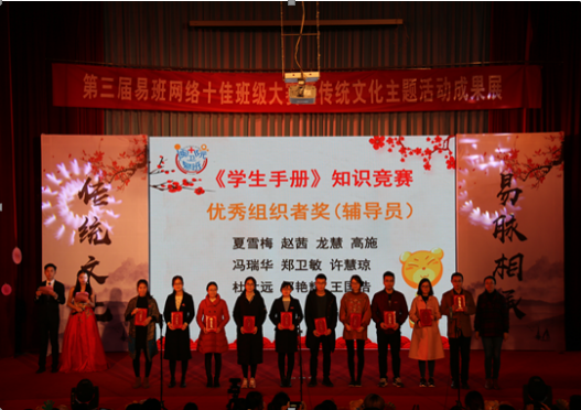 相約明湖之畔,大展中華風(fēng)采。12月25日晚,“致敬傳統(tǒng),易路同行”福建衛(wèi)生職業(yè)技術(shù)學(xué)院第三屆易班網(wǎng)絡(luò)十佳班級(jí)大賽暨學(xué)生工作表彰大會(huì)在學(xué)術(shù)廳成功舉行。本次大賽由學(xué)生工作處主辦,易班學(xué)生工作站承辦,學(xué)院黃銘珊副院長(zhǎng)、福建藝術(shù)職業(yè)學(xué)院就業(yè)辦夏云清主任等出席了活動(dòng),院學(xué)生工作處、團(tuán)委、護(hù)理系、藥學(xué)系、醫(yī)學(xué)技術(shù)系等部門(mén)負(fù)責(zé)人,學(xué)院和各系易班分站指導(dǎo)老師,以及400余名同學(xué)共同參加了活動(dòng)。