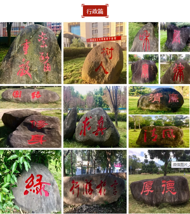 項(xiàng)目負(fù)責(zé)人、福建省書(shū)法家協(xié)會(huì)會(huì)員洪常青老師花費(fèi)3個(gè)多月時(shí)間,精心擬定石刻內(nèi)容,精心設(shè)計(jì)指導(dǎo)施工,使校園綠地原有景觀石得到了“升級(jí)”。