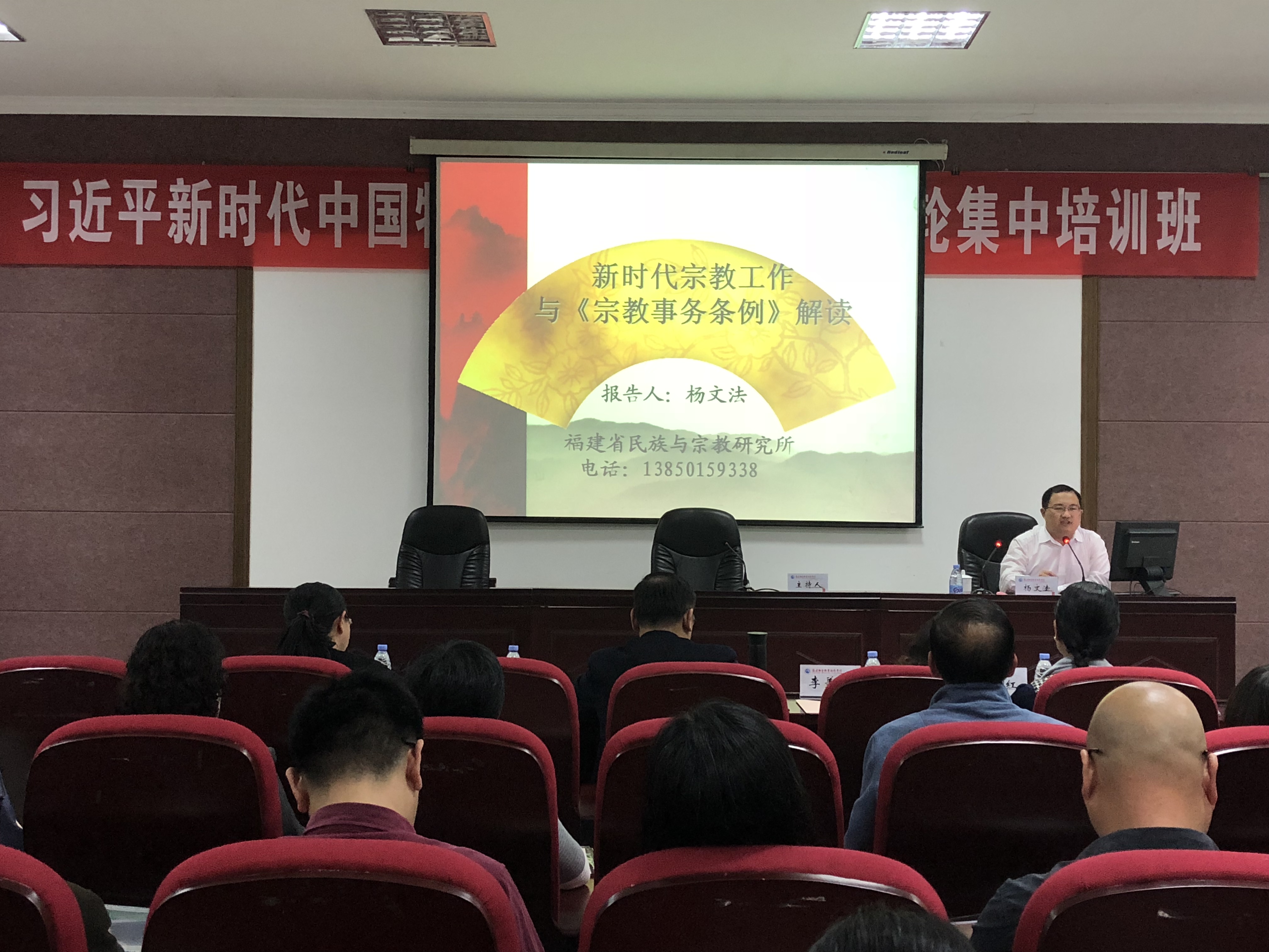 本次培訓(xùn)共3天,以開班儀式、專家講座、小組討論、專題研討等多種形式展開,在福建省委教育工委副書記王建南為全體學(xué)員們做了《按照學(xué)懂弄通做實的要求把學(xué)習(xí)貫徹習(xí)近平新時代中國特色社會主義思想引向深入》專題講座之后,圍繞《新時代宗教工作與< 宗教事務(wù)條例>解讀》《提升基層黨務(wù)工作操作能力》《牢牢把握黨對意識形態(tài)工作領(lǐng)導(dǎo)權(quán)——學(xué)習(xí)貫徹習(xí)近平新時代中國特色社會主義思想》《不忘初心 牢記使命 知史愛黨 以史鑒今》等主題,邀請了福建省民族宗教廳民族與宗教研究所副所長楊文法,省直機(jī)關(guān)工委原委員、原組織部長黃漢基,市委黨校俞慈珍教授,市委黨校吳常興副教授為學(xué)員們授課。專家們結(jié)合自身工作經(jīng)歷和詳實案例,與大家分享交流了思路和感悟,兼具理論性與實用性,令學(xué)員們深受啟發(fā)。