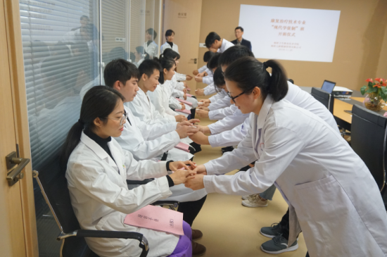 開(kāi)班儀式上,黃銘珊副院長(zhǎng)表示,“現(xiàn)代學(xué)徒制”教育架起了學(xué)校與行業(yè)之間的橋梁,使學(xué)生職業(yè)教育更具有社會(huì)性、實(shí)踐性、專業(yè)性和操作性。學(xué)院將與福建元新健康管理有限公司共同努力,以“現(xiàn)代學(xué)徒制”班為載體,共同探討康復(fù)治療技術(shù)專業(yè)的學(xué)院、企業(yè)雙主體育人新模式。隨后,福建元新健康管理有限公司陳鋒總裁對(duì)加入元新康復(fù)這個(gè)大家庭的同學(xué)們表示歡迎,并介紹了公司的創(chuàng)業(yè)歷程與大力推進(jìn)“提高中國(guó)人健康水平”的企業(yè)戰(zhàn)略。陳總表示公司的蓬勃發(fā)展也助推了福建區(qū)域康復(fù)領(lǐng)域的發(fā)展,同時(shí)通過(guò)與院校對(duì)接、引進(jìn)康復(fù)專業(yè)人才的方式,可更好地促進(jìn)企業(yè)的自身發(fā)展。