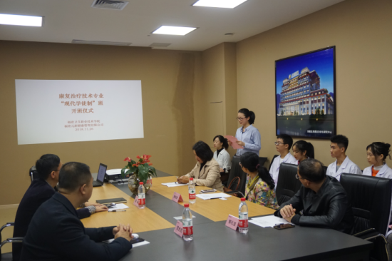 11月26日,我院與福建元新健康管理有限公司聯(lián)合開(kāi)辦的2017級(jí)康復(fù)治療技術(shù)專業(yè)“現(xiàn)代學(xué)徒制”班開(kāi)班儀式在福建元新健康管理有限公司舉行。我院黃銘珊副院長(zhǎng)、教務(wù)處朱扶蓉處長(zhǎng)、臨床醫(yī)學(xué)系郭禮堅(jiān)主任,福建元新健康管理公司陳鋒總裁、醫(yī)務(wù)部的范世垚主任共同出席,企業(yè)導(dǎo)師團(tuán)隊(duì)、我院康復(fù)教研室全體教師以及17康復(fù)治療技術(shù)301班全體同學(xué)參加本次開(kāi)班儀式。